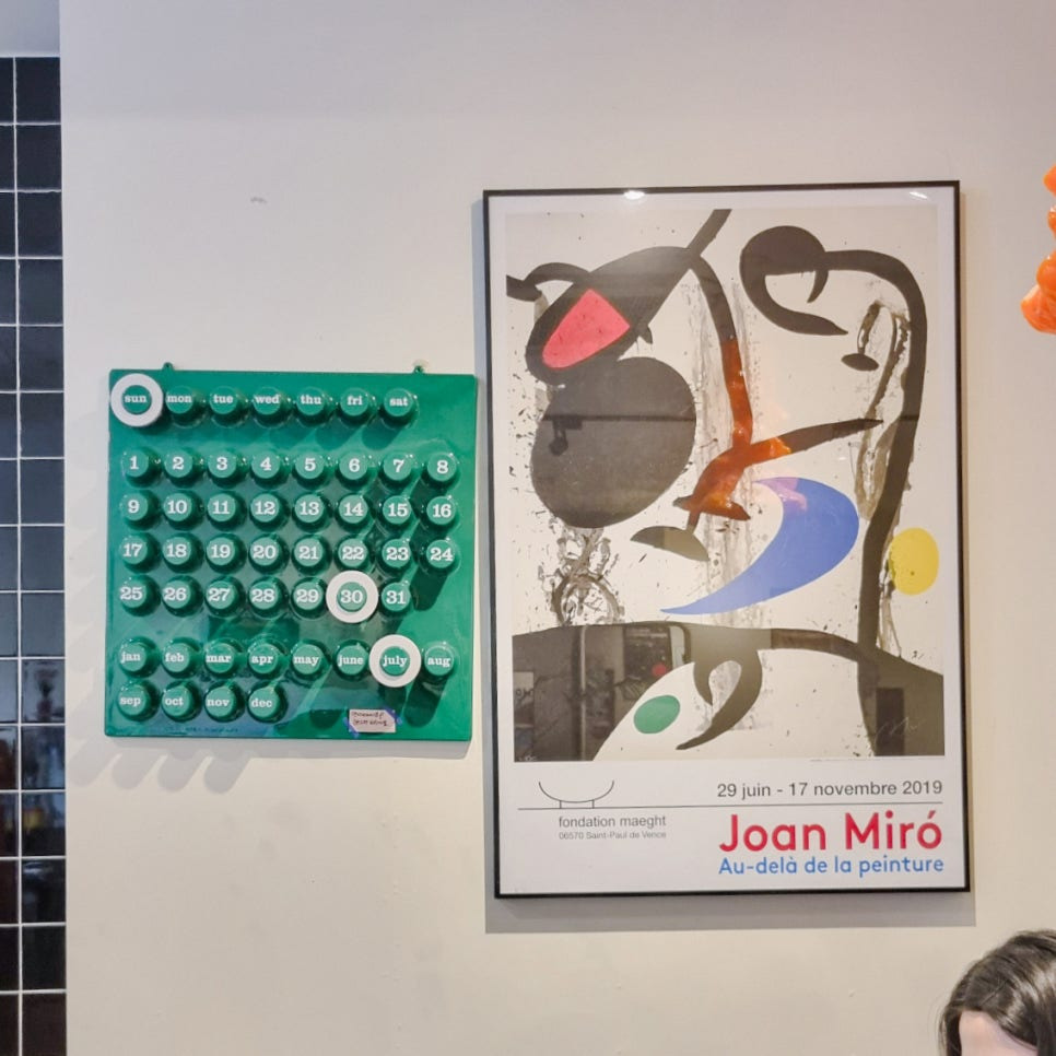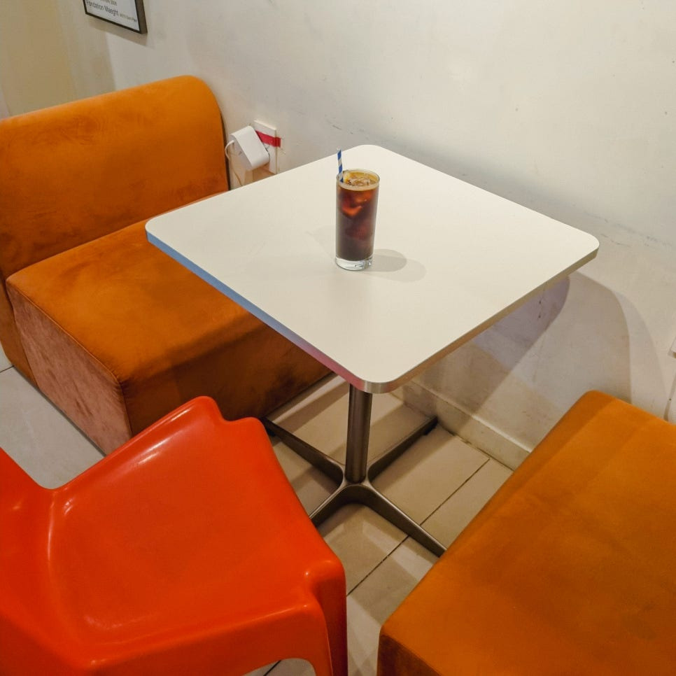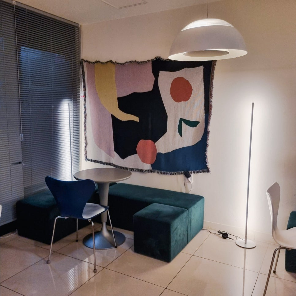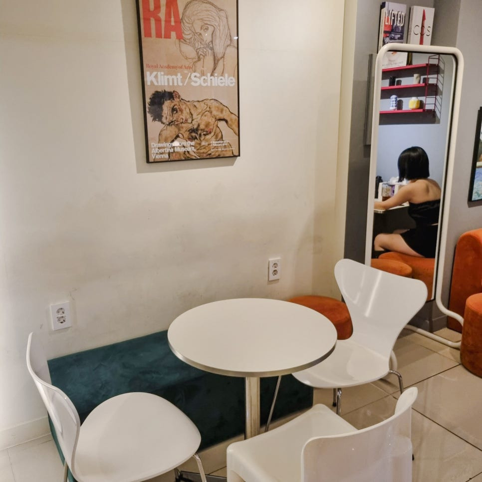 벽면에 걸려있는 그림과 각기 다른 의자와 테이블 어떤 곳에 자리를 잡아야 할 지 고민되었어요.
