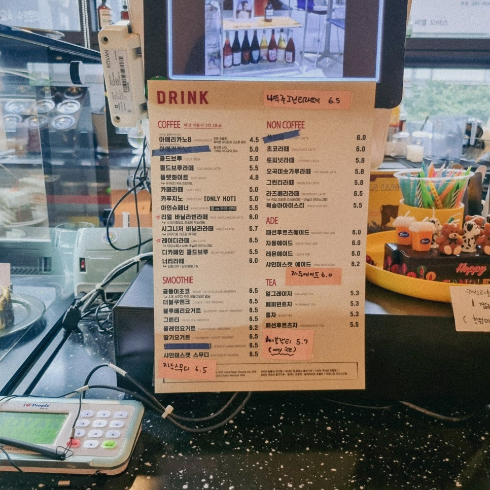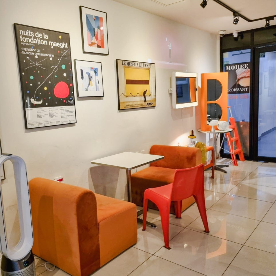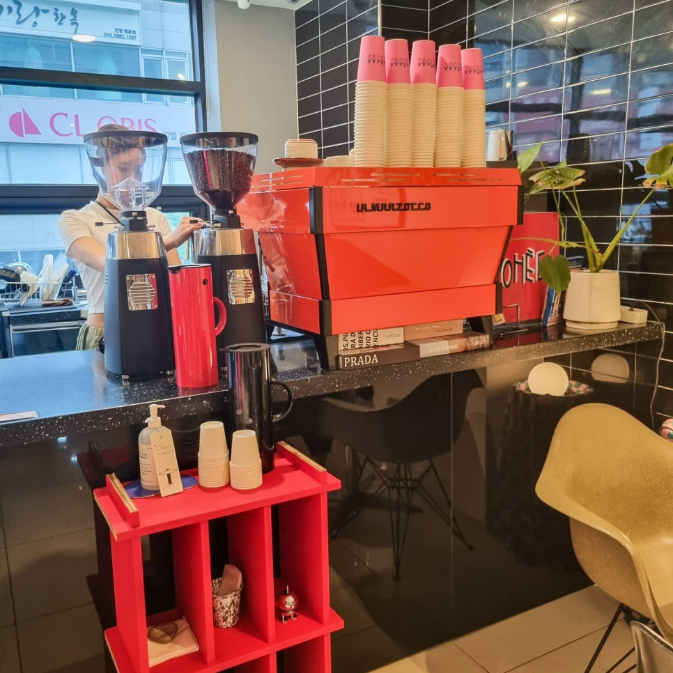 매장 컬러톤은 모던한 스타일인 것 같으면서도 비비드 한 컬러감의 인테리어 소품으로 디테일을 주어 힙한 느낌이 가득했어요.