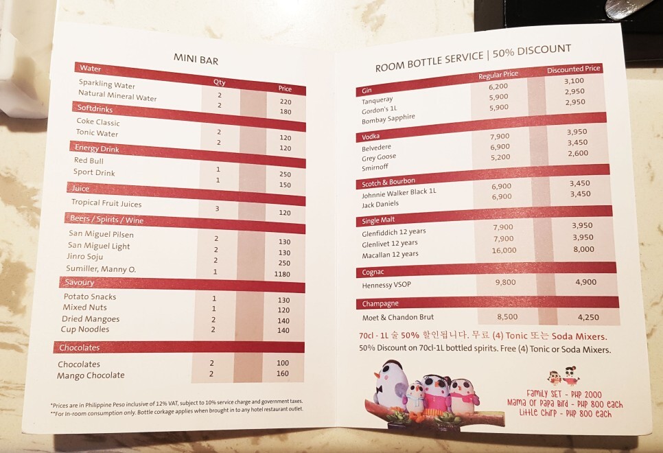다음날과 그 다음날 2일 조식 신청했고, 200페소씩 할인받아 2인 2일 총 4,000페소 현장 결제했어요.