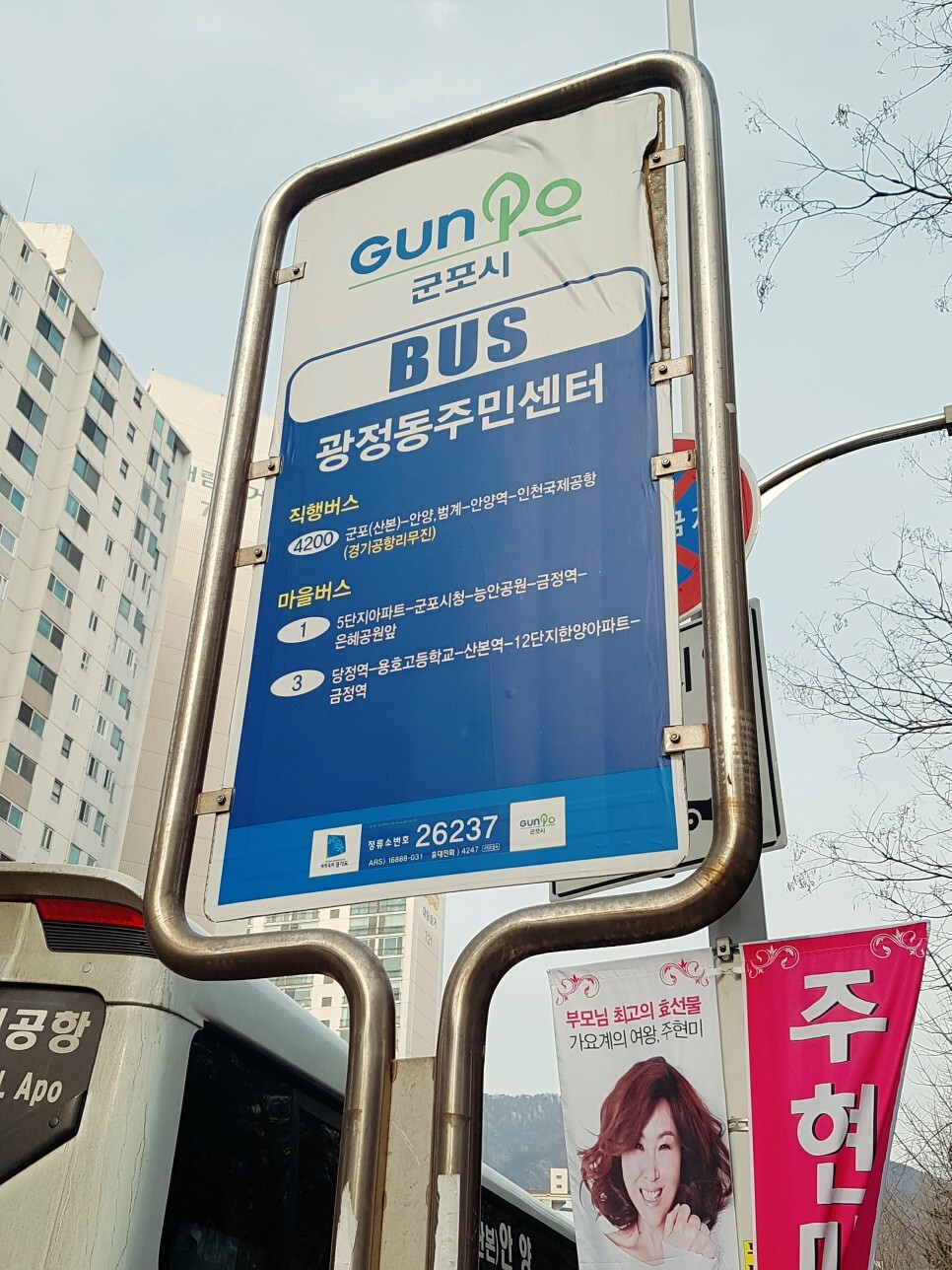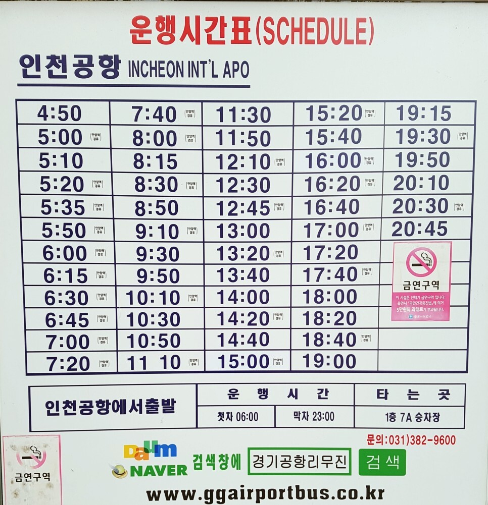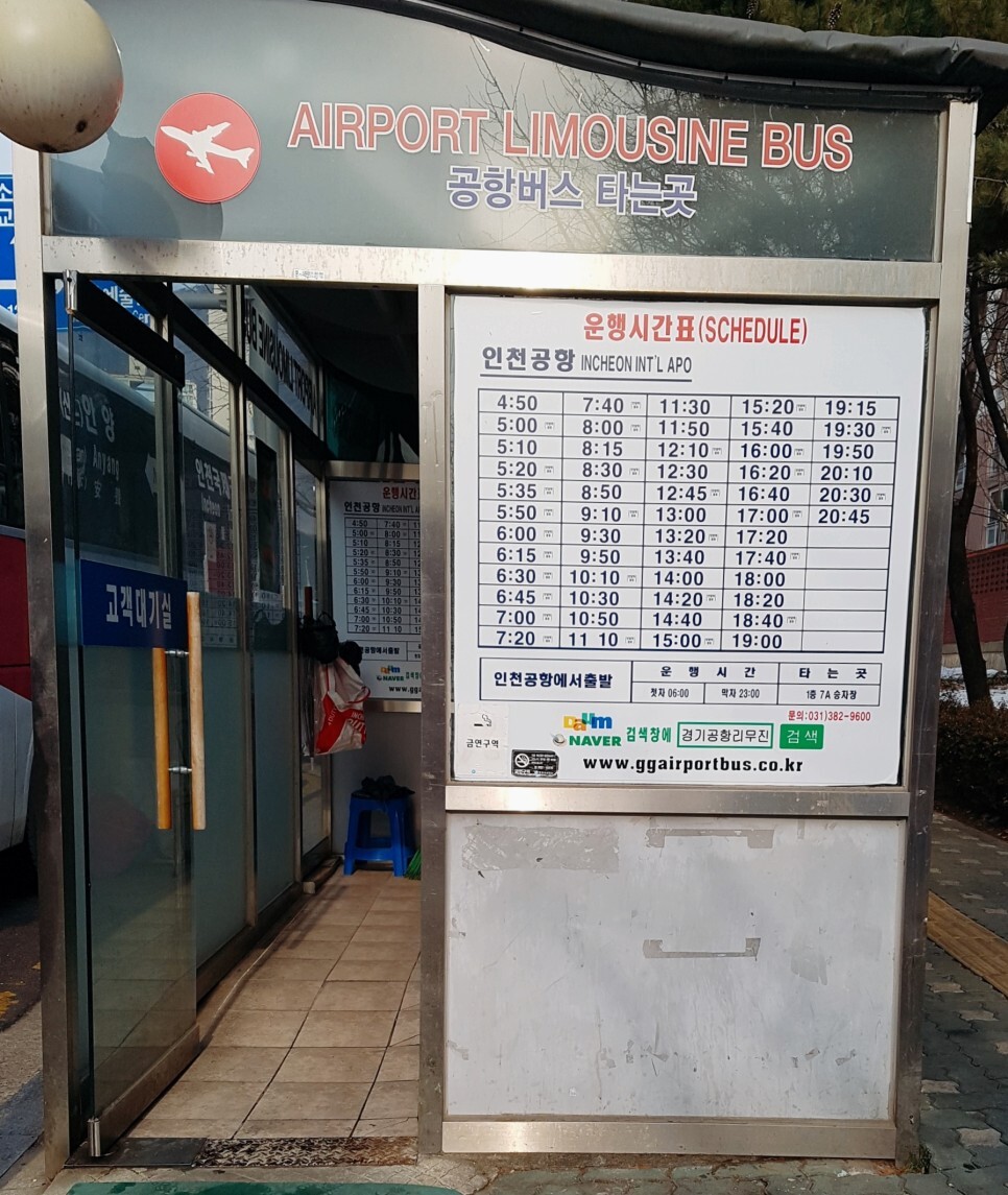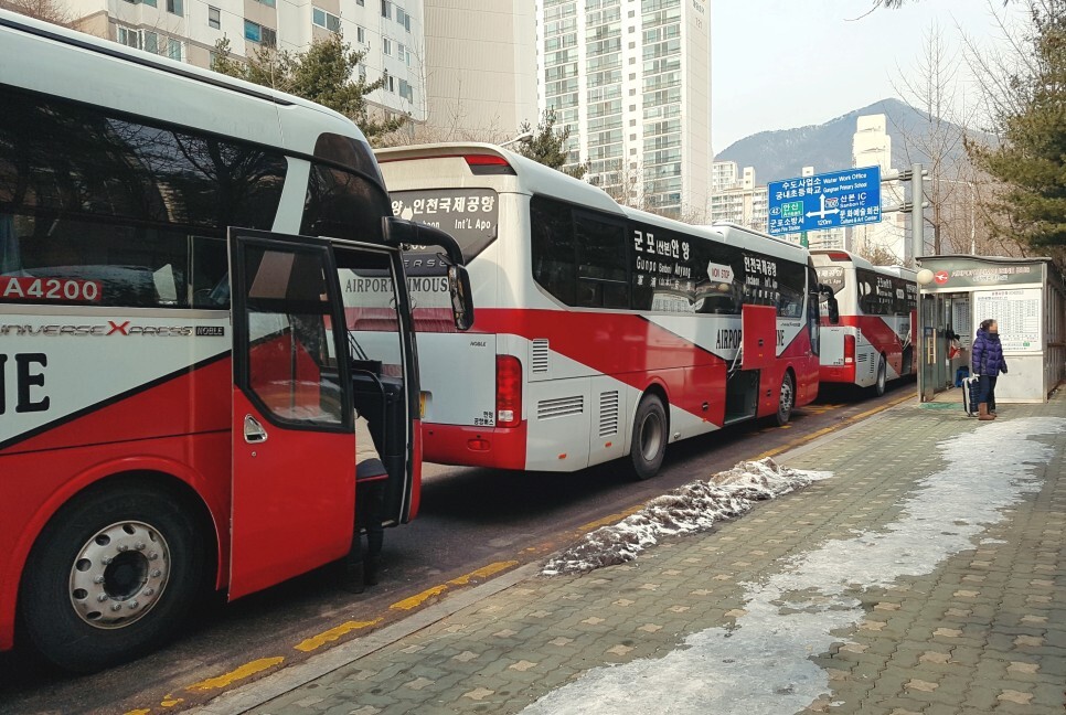 버스정류장에 도착해보면 이렇게 군포에서 인천공항으로 가는 버스가 순서대로 줄지어져 서있어요.